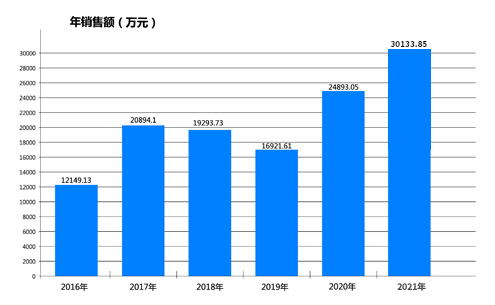 隨著不斷地資金投入與技術投入,企業的年銷售額穩步增長,至2015年,全年銷售額已破億;并于2021年,突破3億;2024年突破3.5億。